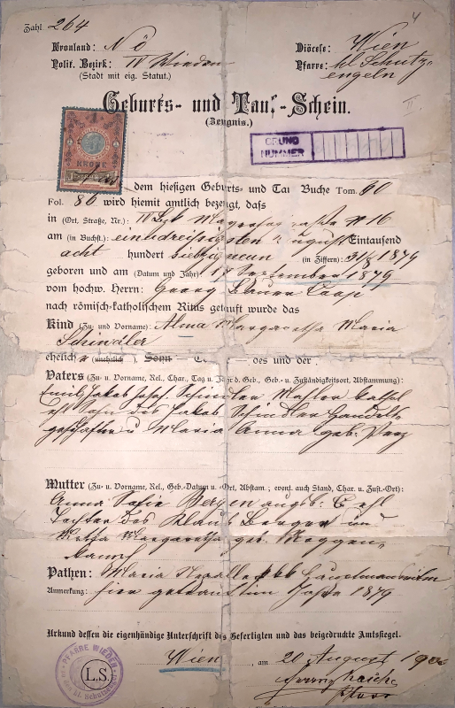 Year 1879 (31-08-1879). Place of birth Alma Mahler (1879-1964). Apartment Jakob Emil Schindler (1842-1892) and