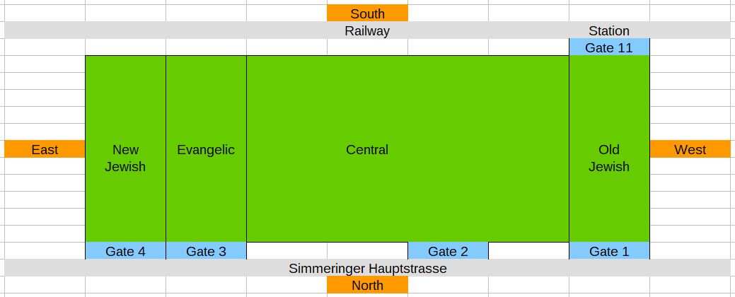 There are 4 cemeteries (from left to right, east to west, along the Simmeringer Hauptstrasse):