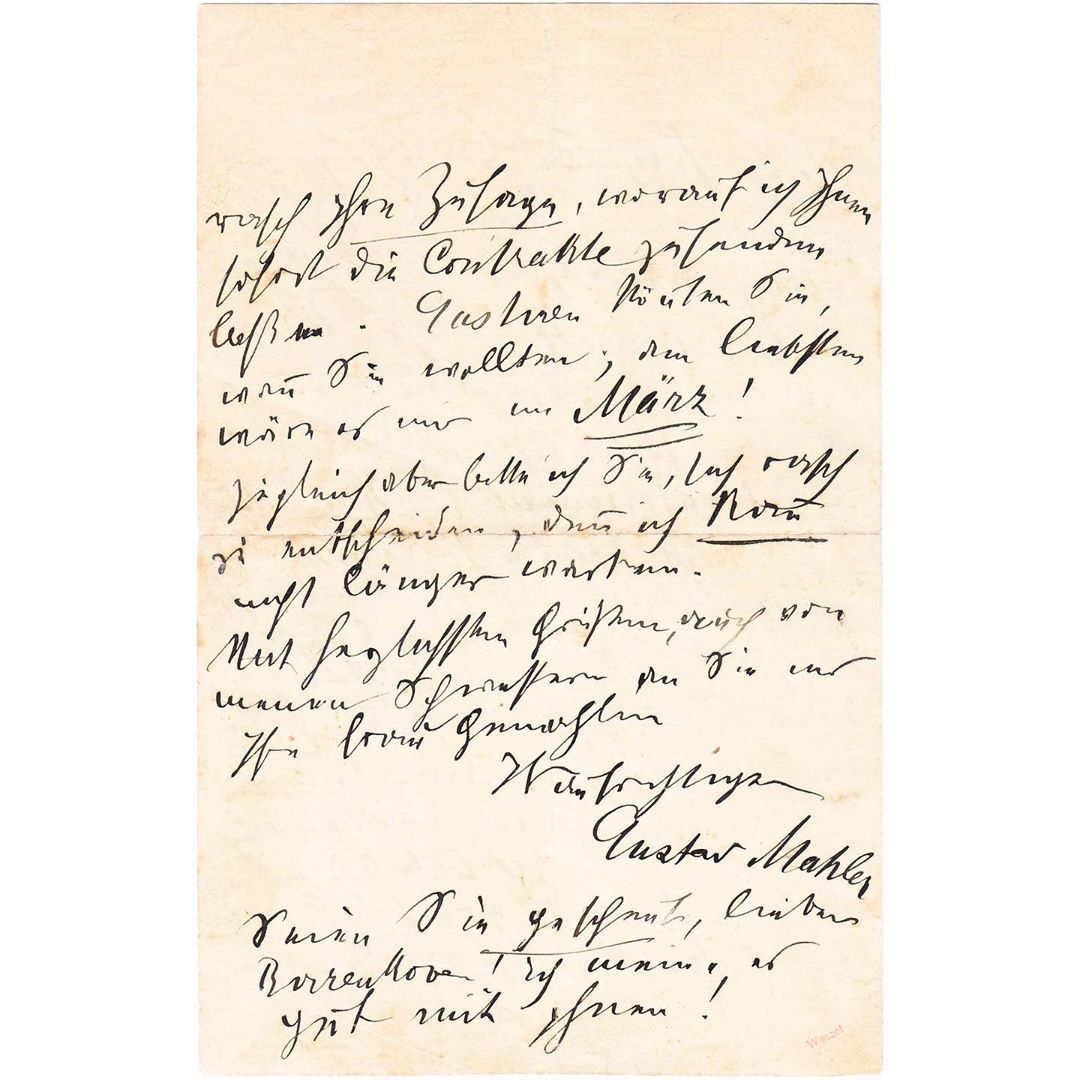 Letter by Gustav Mahler to Wilhelm Birrenkoven (1865-1955).
