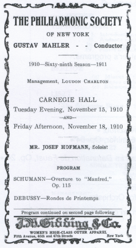 Chronology: Year 1910 Location: Carnegie Hall Nature: Third regular subscription concert Program: