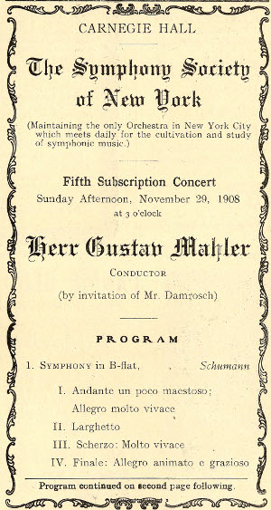 Chronology: Year 1908 Location: Carnegie Hall Nature: No Program: Mahler Composition Mahler: