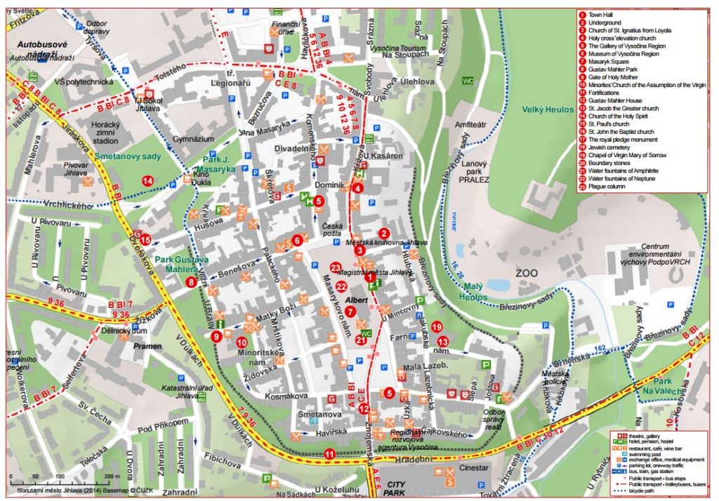 City of Jihlava map 2014 (Czech, English) City of Iglau map 1876