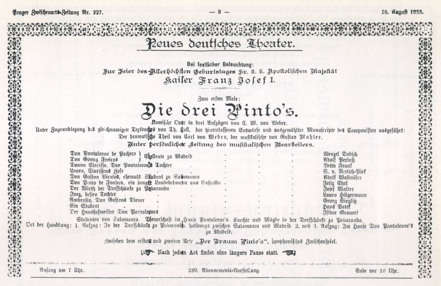 Chronology: Year 1886 Location: Prague Koniglich Deutsches Landestheater Program: Der Prophet (Meyerbeer)