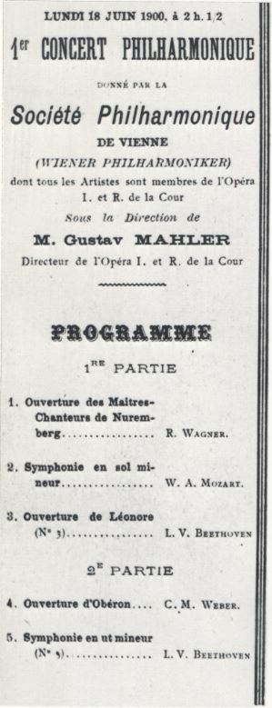 Chronology: Year 1900 Location: Chatelet theater Nature: 1er Concert Philharmonique de Vienne