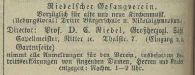 Year 1887. Riedel Gesangverein. Mixed choir. 1887 Concert Leipzig 30-11-1887. Carl Riedel
