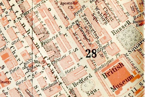 22 Alfred Place; just off Tottenham Court Road, close to Goodge Street