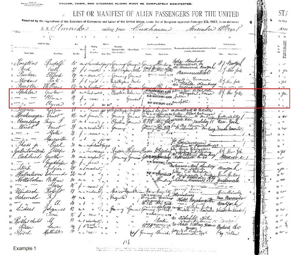 Ellis Island arrival: 1908 Westbound 11-11-1908 until 21-11-1908 S.S. Amerika. Gustav Mahler (1860-1911), Alma Mahler (1879-1964), Anna Justine Mahler (Gucki) (1904-1988) and nanny Lizzie Turner (ends 1909).