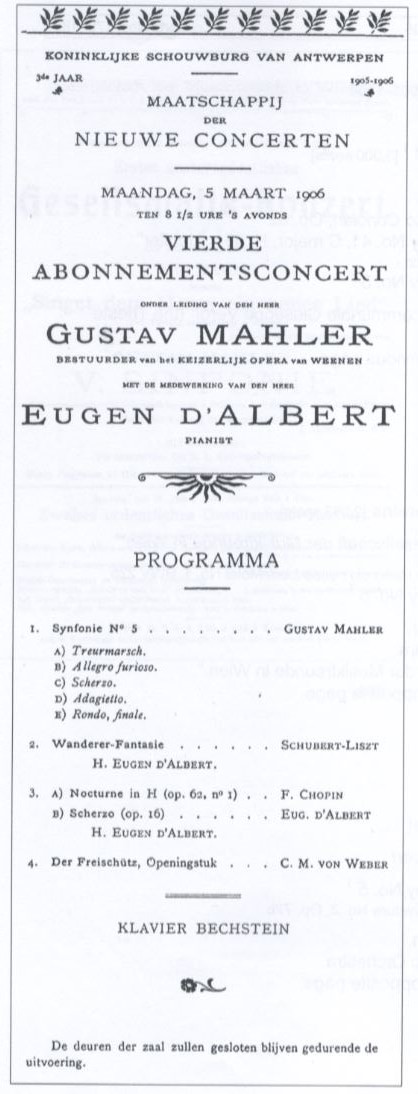 - Notes: First performance of Mahler – Symphony No. 5 in Antwerp