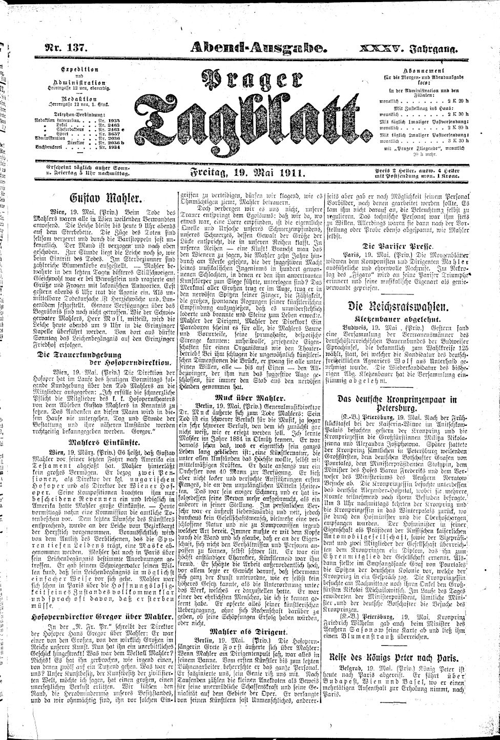 The Prager Tagblatt was a German language newspaper published in Prague from 1876 to 1939. Considered to be the most influential liberal-democratic German newspaper in Bohemia, it stopped publication after the German occupation of Czechoslovakia. The Prager Zeitung, a German weekly published in Prague since 1991, claims to continue the traditions of the Prager Tagblatt.